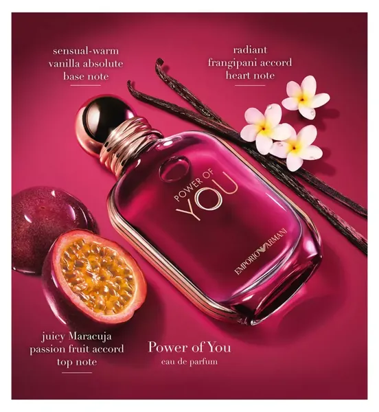 Discover Power Of You Eau De Parfum for her, by Emporio Armani. Captured in a ruby-toned, jewel-like bottle, Power of You encapsulates a new gourmand addiction - a sensual concentrate created to be worn from day to night.
