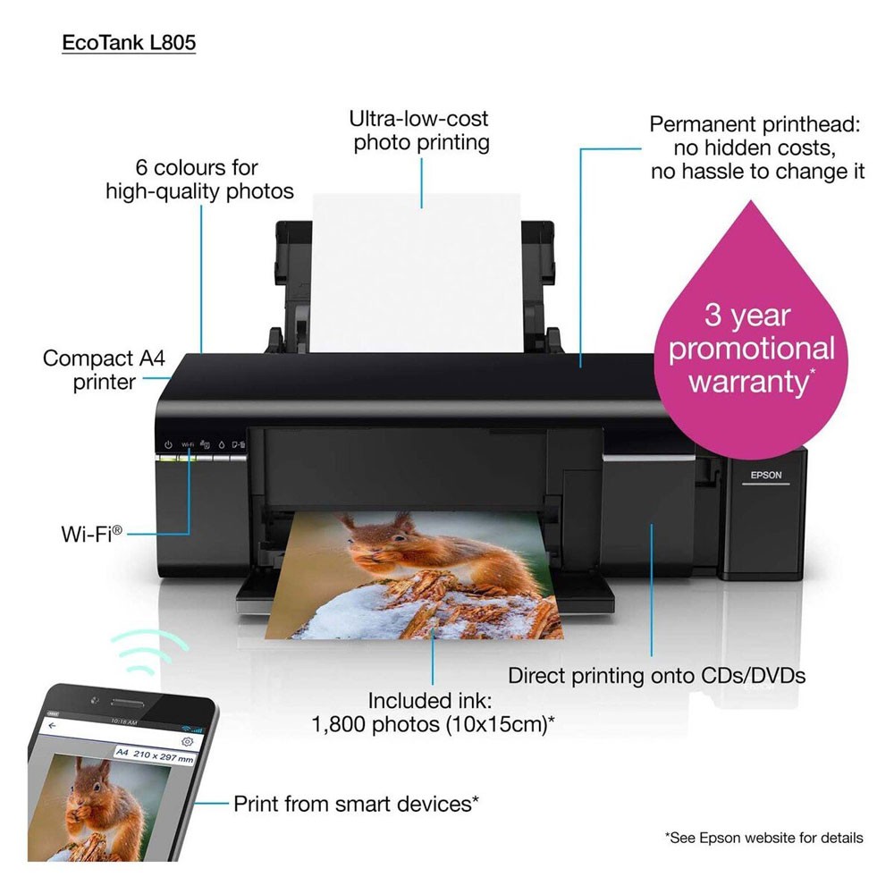 Epson A4 Wireless Photo Printer with Wi-Fi L805