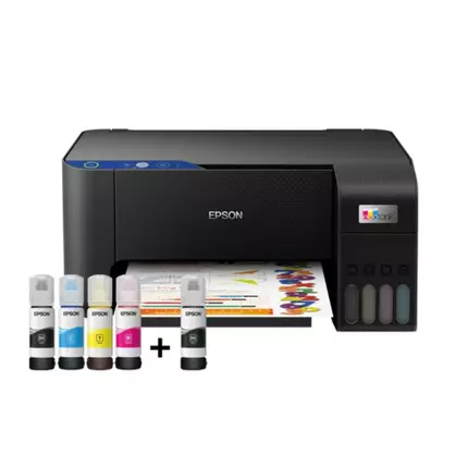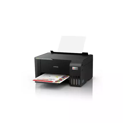 Epson Eco Ink tank Printer L3211(C11CJ68406) Description With no cartridges to replace, this is the perfect multifunction (print-scan-copy) printer with a exclusive blue panel design for anyone looking for high-quality prints at an incredibly low cost per page. Featuring a 100-sheet rear paper tray, borderless photo printing (up to 10x15cm) and print speeds of up to 10 pages per minute1, you can speed through a variety of tasks with ease. EcoTank provides hassle-free low-cost home printing - the ultra-high capacity ink tanks allow mess-free refills and the key-lock bottles are designed so only the correct colour can be inserted. This economical printer saves you up to 90% on printing costs2 and comes with up to 3 years' worth of ink included in the box3. The included set of ink bottles delivers up to 8,100 pages in black and 6,500 in colour4. Featuring print-scan-copy functionality, borderless photo printing (up to 10x15cm), you can speed through a variety of tasks with ease. With Epson Micro Piezo Heat-Free Technology you can enjoy fast and high-quality printing. The reliable and long lasting printhead also comes pre-installed so setting up your printer is hassle-free. Feature Multifunction printer Print, copy, scan Ultra-low-cost printing Save up to 90% on printing costs2 Up to 3 years of ink in the box3 Includes 8,100 pages in black and 6,500 in colour4 Hassle-free ink tank system Enjoy mess-free refills with key-lock bottles and front-facing tanks Printer Type – Ink Tank; Functionality – All-in-One (Print, Scan, Copy) , Scanner type – Flatbed; Printer Output – Colour; Connectivity -USB, App Pages per minute – 33 pages (Black & White), 15 pages (Colour) ; Cost per page – 7 paise (Black & White), 18 paise (Colour) – As per ISO standards Ideal usage – Home and Small office, Regular / Heavy usage (more than 300 pages per month) Page size supported – A4, A5, A6, B5, C6, DL ; Duplex Print – Manual ; Print resolution – 5760 x 1440 Specification Brands: Epson Modal: Eco Tank L3211 Printer Body Color: Black Function: Print, Copy, Scan Print Technology: Ink tank Print Speed: 15 pages/min Colour (plain paper 75 g/m²), 33 pages/min Monochrome (plain paper 75 g/m²), 27 Seconds per 10 x 15 cm photo (Epson Premium Glossy Photo Paper) Print Resolution: 5,760 x 1,440 DPI Scan Resolution: 600 x 1200 dpi Energy Use: 12 Watt (standalone copying, ISO/IEC 24712 pattern), 0.4 Watt (sleep mode), 4 Watt (Ready), 0.2 Watt (Power off), TEC 0.04 kWh/week Output Tray Capacity: 30 Sheets Paper Tray Capacity: 100 Sheets Standard, 100 Sheets Maximum, 20 Photo Sheets Media Size: C6 (Envelope), B5, A6 (10.5x14.8 cm), A5 (14.8x21.0 cm), A4 (21.0x29.7 cm), Legal, User defined, 13 x 18 cm, 10 x 15 cm, Letter, No. 10 (Envelope), DL (Envelope), 16:9 No. Of Cartridge: Black, Cyan Yellow, Magenta USB Port: Yes Dimension: 375 x 347 x 179 mm (Width x Depth x Height) Weight: 3.9kg