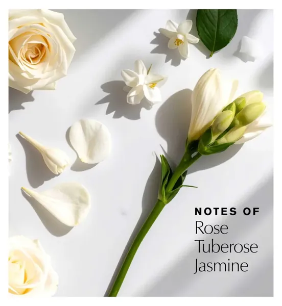 The fragrance of a thousand flowers - Beautiful Eau de Parfum. A rich blend of Rose, Lily, Tuberose and Orange Flower. Brightened with citrus, warmed by woods. Romantic, feminine, memorable.