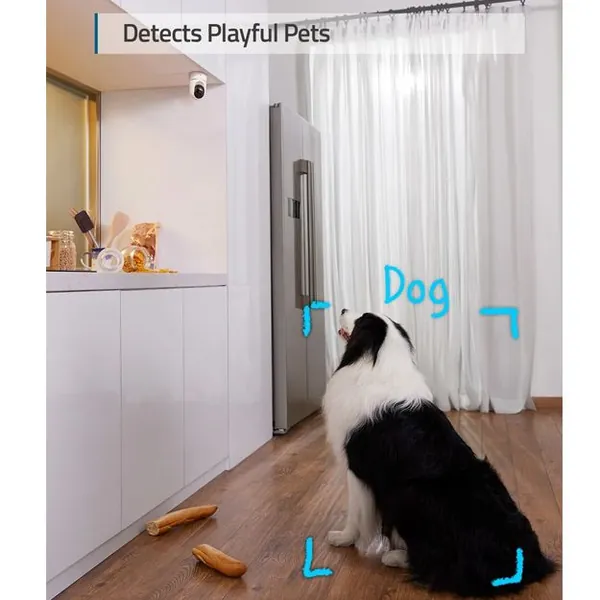 The on-device AI determines whether a human or pet is present and only records when an event of interest occurs.