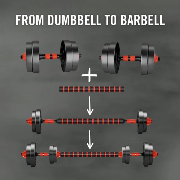 The Everlast 40KG Vinyl Barbell & Dumbbell Set is a 2 in 1 design that allows the set to be interchangeable to perform multiple different workouts. The set includes 2 x dumbbell bars with 4 x spinlock collars, 1 x barbell bar connector, non-slip grip handles and a vinyl weight plate set. The total weight of the set is 40KGS and includes the bar and collars. The Everlast 40KG Vinyl Barbell & Dumbbell Set is ideal for strength training and can be used in conjunction with any Everlast gym or bench.