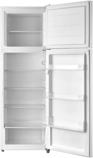 The Evvoli EVRFM-300S is a 300-liter double door refrigerator in white, designed to combine spacious storage with advanced freshness technology. It offers efficient organization and quiet operation for your kitchen.