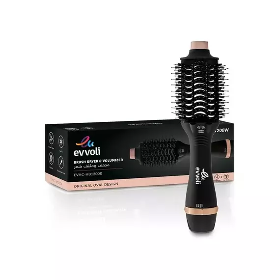 Features: 3-in-1 Functionality: This versatile tool combines a hair dryer, brush, and volumizer, allowing you to dry, style, and add volume to your hair in one easy step. Powerful 1200W DC Motor: The efficient 1200W motor provides fast drying and styling, ensuring your hair looks great in less time. Four Times Ionic Technology: The enhanced ionic feature reduces frizz and static, promoting smooth and shiny hair while helping to maintain moisture. Cool Tip for Safety: The cool tip design allows for comfortable handling during styling, ensuring you can create your desired look safely and effectively. Lightweight and Ergonomic Design: The lightweight construction and ergonomic grip make it easy to maneuver, reducing arm fatigue during use. Sleek and Stylish Appearance: The modern design not only looks great but also fits seamlessly into your beauty routine, making it a stylish addition to your hair care tools General Specifications: Product Type: Brush Dryer And Volumizer Colour: Black Wattage: 1200W Special Features: Swivel Cord/Quattro Ionic Feature Brand: Evvoli Model no: EVHC-HB1200R Product Dimension: 419 x 155 x 145 mm