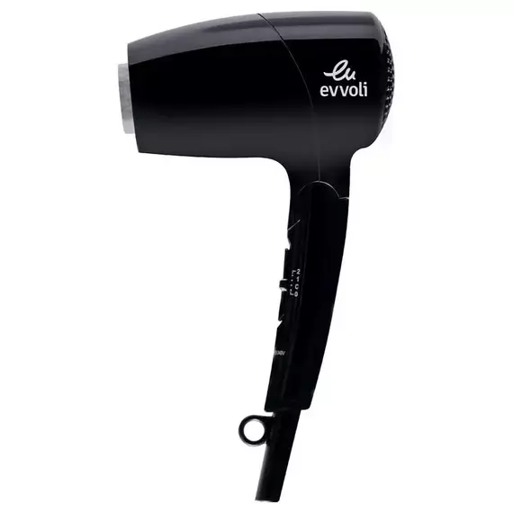 Features: Powerful 1500W DC Motor: This hair dryer features a robust 1500W DC motor, ensuring fast drying times and efficient performance for all hair types. Four Speed Settings: With four adjustable speed settings, you can customize the airflow to achieve your desired drying and styling results, from gentle drying to powerful airflow. Foldable Handle: The foldable handle design makes it compact and easy to store or pack for travel, perfect for those on the go. Lightweight Design: Weighing in at a lightweight construction, this hair dryer offers comfortable handling and reduces arm fatigue during extended use. Sleek Black Aesthetic: The modern black finish not only looks stylish but also fits seamlessly into any bathroom decor. User-Friendly Features: Designed for convenience, the dryer includes a removable air filter for easy cleaning and maintenance, ensuring optimal performance over time General Specifications: Product Type: Hair Dryer Colour: Black Wattage: 1500 Watts Foldable Handle/Hanging Loop Brand: Evvoli Model no: EVHC-HD1500B Product Dimension: 130 x 85 x 215 mm