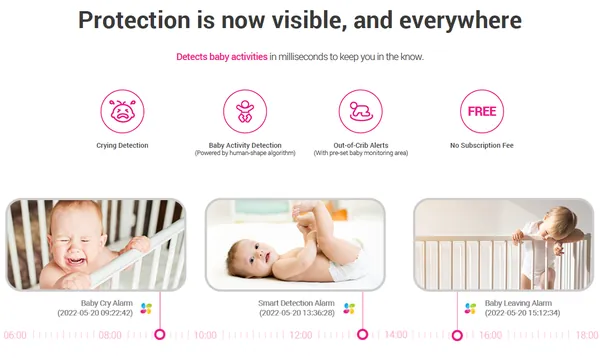 - Out-of-Crib Alerts (With pre-set baby monitoring area)