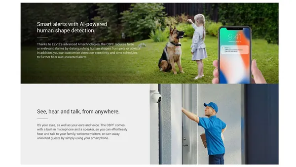 Thanks to EZVIZ s advanced AI technologies, the C8PF reduces false or irrelevant alarms by distinguishing human shapes from pets or objects. In addition, you can customize detection sensitivity and time schedules to further filter out unwanted alerts.