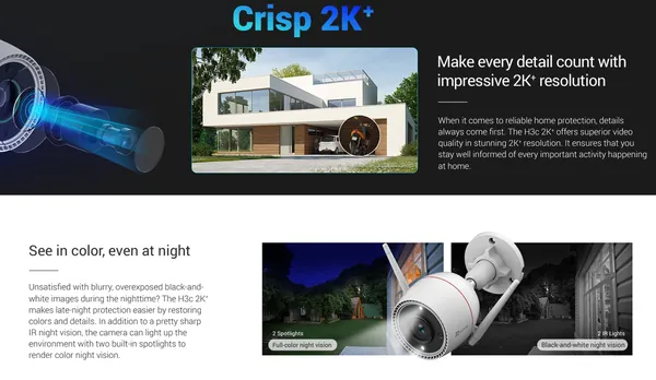 Color Night Vision Range: Up to 15 meters with built-in spotlights