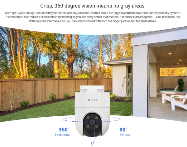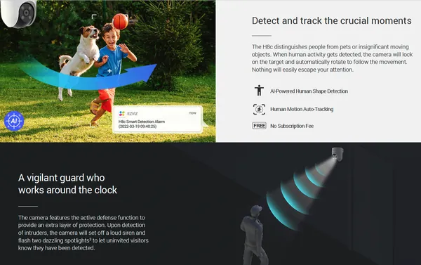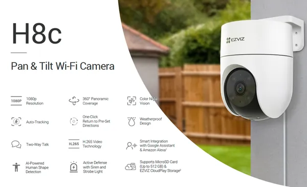 App Support: EZVIZ App for remote view, pan/tilt, settings, and playback