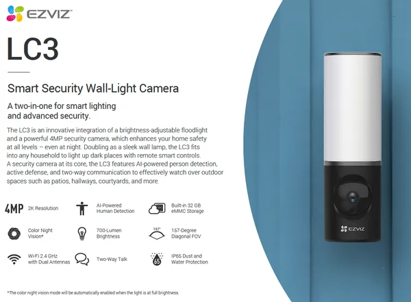 Secure your home with confidence and convenience using the EZVIZ LC3 - the ultimate combination of smart lighting and advanced security technology. With its innovative features and seamless integration, protecting your home has never been easier.