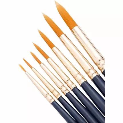 Paint brushes with best quality hair, anti-rusting ferrules, and wooden handle. Synthetic Hair Paint Brush: For acrylic and oil colors. Available with round and flat brushes. Range of brush hair size: 000 to 12 (Round Hair Paint Brushes), 1 to 12 (Flat Hair Paint Brushes). Assorted sets of 7 and 4