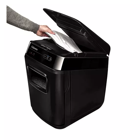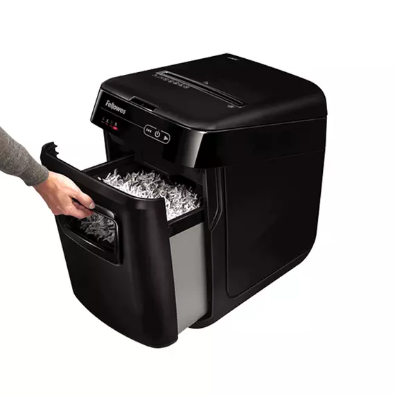 - AutoMax® offers a truly walk away shredding experience, automatically shredding stacks of paper with wrinkles, staples, and even paper clips. Simply load the tray, press start, and walk away!