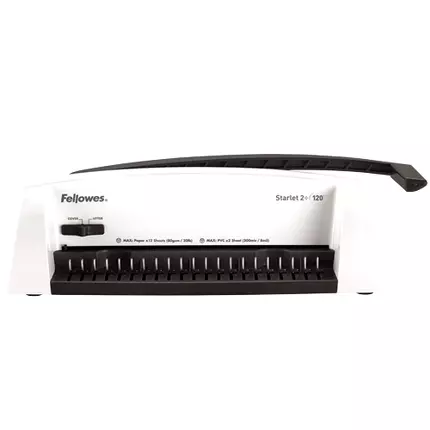 Manually punches up to 12 sheets at a time; Binds up to 120 sheets with a 5/8” comb