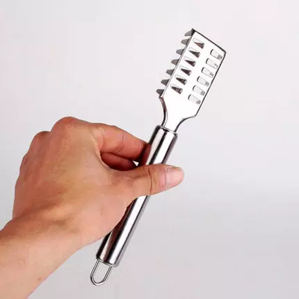 An indispensable handy tool for housewives or professional chefs and restaurateurs. Helps to easily and effectively remove scales from almost all fish.