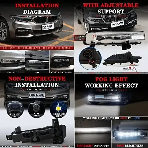 Fog Lamp Fog Light Compatible With Bmw 5 Series G30 2017-2021 6 Series G38 2018-2021 Fog Lamp Fog Light Right 63177349132