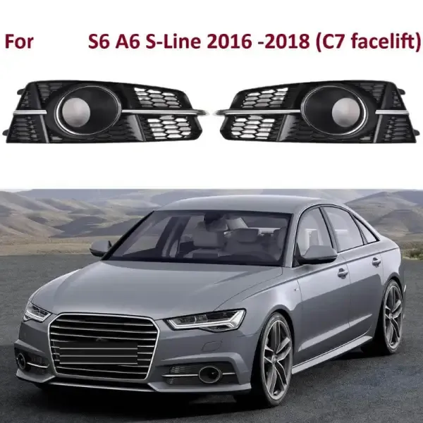 Compatible With Audi A6 S6 2016-2018 Fog Lamp Grill Cover Frame Sports Chrome With Hole