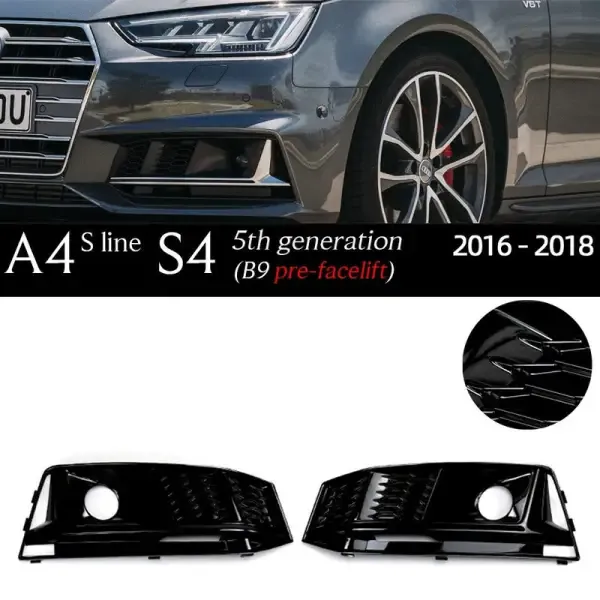 Compatible With Audi A4l S4 Fog Lamp Grill Frame Cover 2019 Good Match With Hole Glossy Black