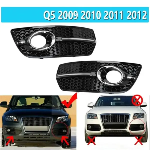 Compatible With Audi Q5 2009-2013 Fog Lamp Light Grill Cover Frame With Black Chrome