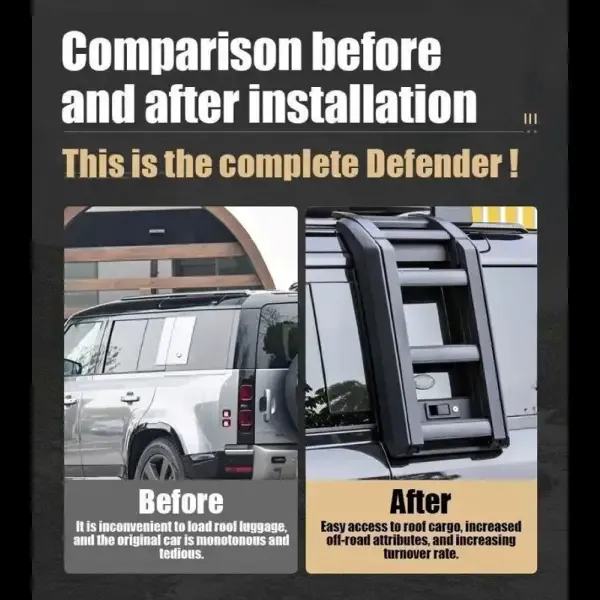 Compatible With Range Land Rover Defender 110 90 130 2020-2024 L663 Folding Climbing Side Access Ladder Side Window Roof Step Black