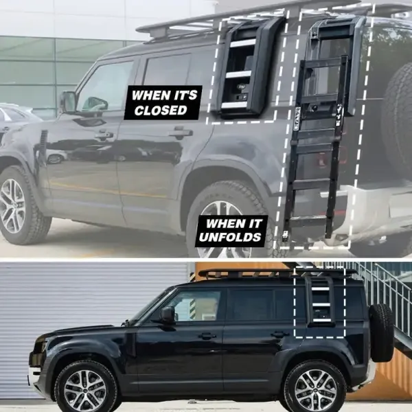 Folding Climbing Side Access Ladder Side Window Roof Step Black CC-4815 Compatible With Range Land Rover Defender 110 90 130 2020-2024 L663