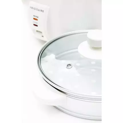 The rice cooker automatically cooks the perfect rice for the correct amount of time, then shuts off automatically for excellent results. Even more, it automatically switches over to a Keep Warm function, which keeps the rice hot and delicious and ready to serve for up to four hours, without over-cooking. A Nonstick coating on the removable inner cooking pan helps prevent cooked rice from sticking to the sides and the bottom and makes cleanup a snap. One thing, all good food lovers cherish is their rice being stranded and not mashed. And with this Fridgidaire Rice Cooker, you get that perfect rice every time. It's 1.8 litre capacity which is big enough to serve the whole family. Includes, convenient features like cook and keep warm indicator and cool touch handles you can just set it going and keep your well cooked rice warm and fresh all through, and will be hot until its ready to be served. Features: Brand: Frigidaire Power: 700 Watts Capacity: 1.8 Liters Cook & Keep Warm Indicator Light Cool Touch Handles Glass Lid Removable Non-Stick Inner Pot Automatic Turn On Function to Warm Food 220-240 volt/ 50-60 Hz Colour: White Power source: Corded Electric