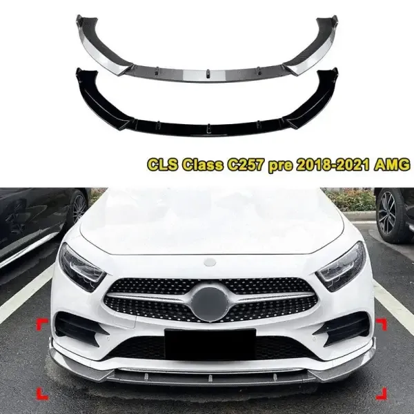 Front Amg Bumper Flag Side Lip Spoiler Skirts Splitter Zst-631 Cf Carbon Fiber Look CC-5344 Compatible With Mercedes Cls W257 C257 Pre Lci 2018-2021