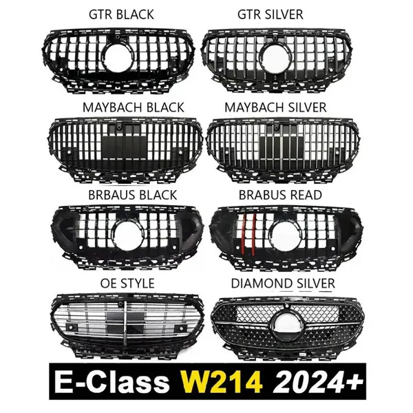 COMPATIBLE WITH MERCEDES BENZ E CLASS W214 2024+ FRONT AMG BUMPER SHOW GRILL BRABUS BLACK