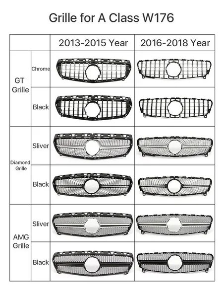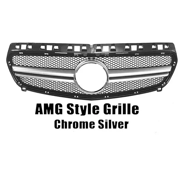 Front Bumper Amg Show Grill Amg Silver GC CC-9455 Compatible With Mercedes Benz A Class W176 2012-2016