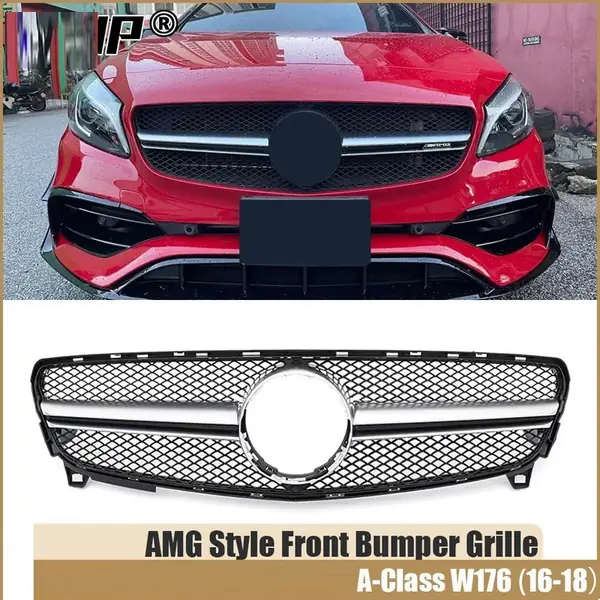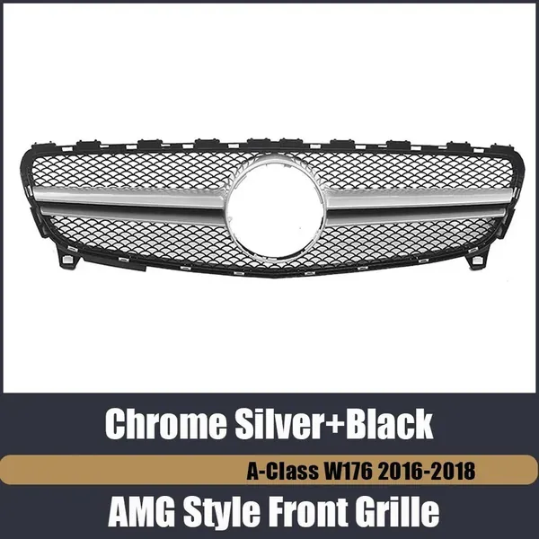 Front Bumper Amg Show Grill Amg Silver Usa GC CC-9457 Compatible With Mercedes Benz A Class W176 Lci 2016-2018