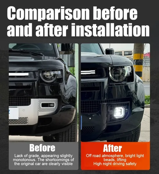 Front Bumper Fog Lamp Fog Light Led Cover CC-7030 Compatible With Range Land Rover Defender 90 110 L663 Lr129997 2020+