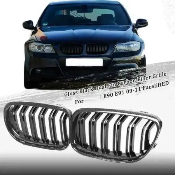 Compatible With Bmw 3 Series E90 2008-2012 Front Bumper Grill Carbon Fiber Look