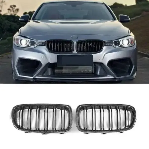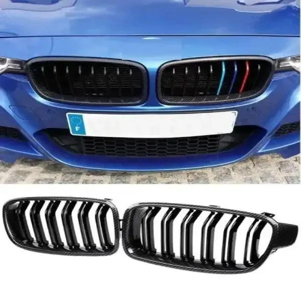 Compatible With Bmw 3 Series F30 2012-2018 Front Bumper Grill Carbon Fiber Look