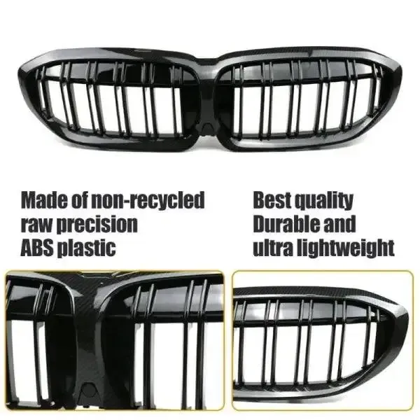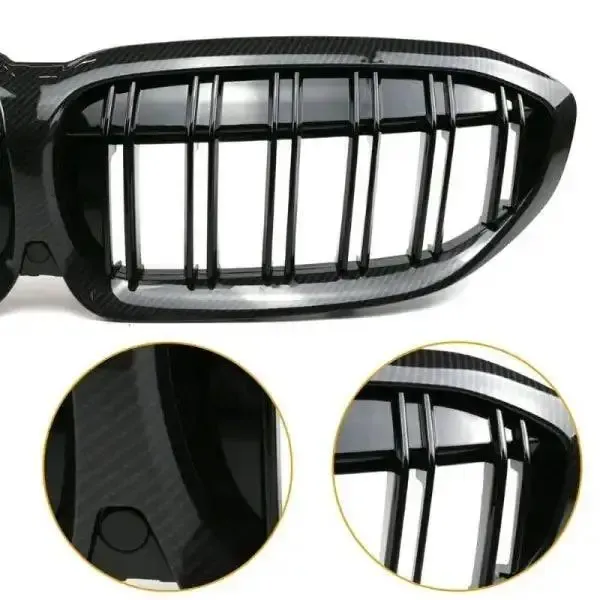 Front Bumper Grill Carbon Fiber Look CC-1556 Compatible With Bmw 3 Series G20 2019-2022