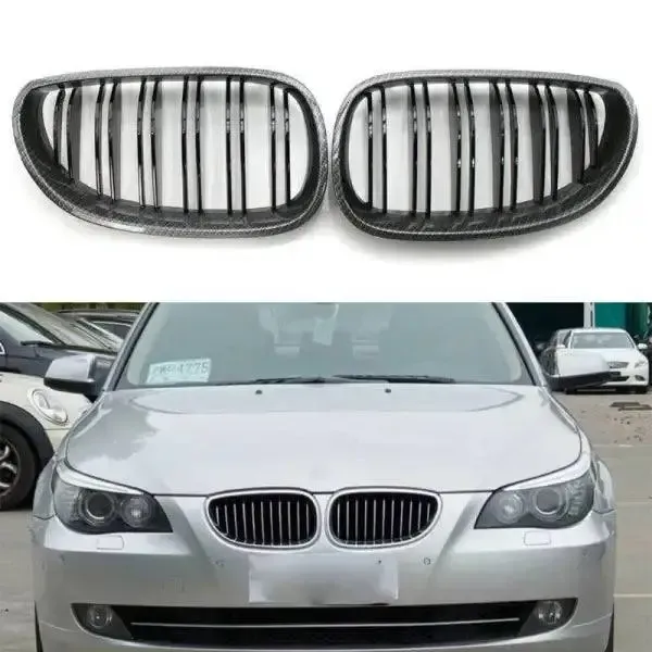 Compatible With Bmw 5 Series E60 2006-2010 Front Bumper Grill Carbon Fiber Look