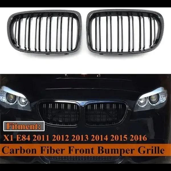 Compatible With Bmw X1 E84 2009-2016 Front Bumper Grill Carbon Fiber Look
