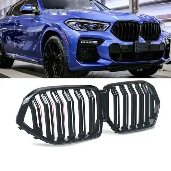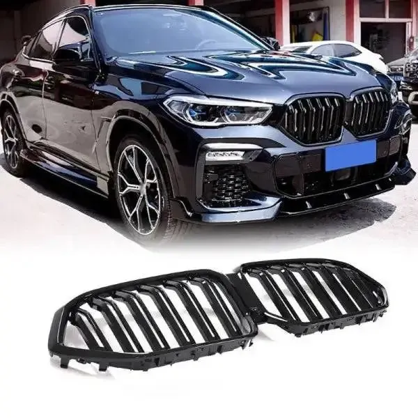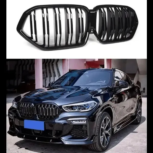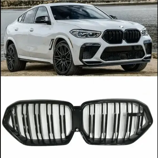 Compatible With Bmw X6 G06 2019-2022 Front Bumper Grill Carbon Fiber Look Glossy Black