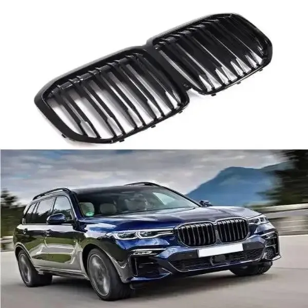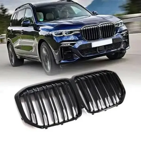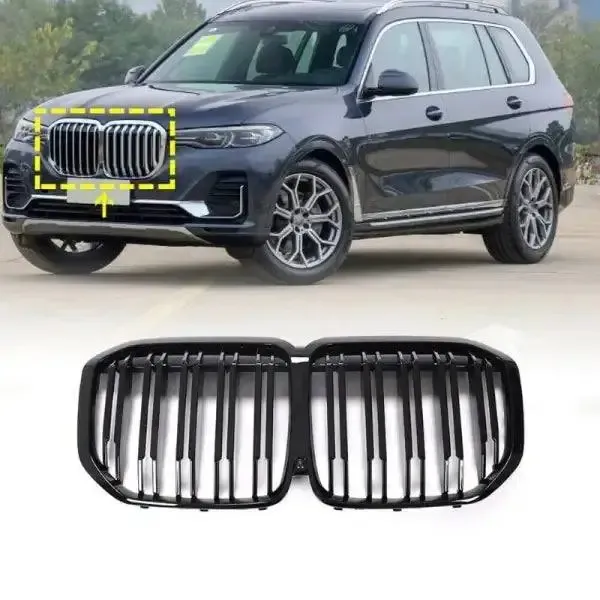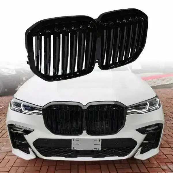 Compatible With Bmw X7 G07 2019-2022 Front Bumper Grill Carbon Fiber Look Glossy Black