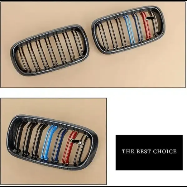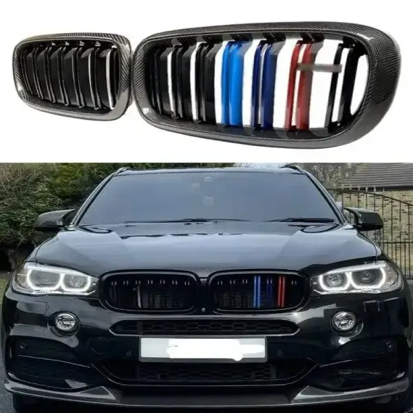 Compatible With Bmw X5 F15 2014-2018 X6 F16 2015-2019 Front Bumper Grill Carbon Fiber Look Tri Colour