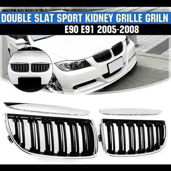 Compatible With Bmw 3 Series E90 2005-2008 Front Bumper Grill Chrome And Black