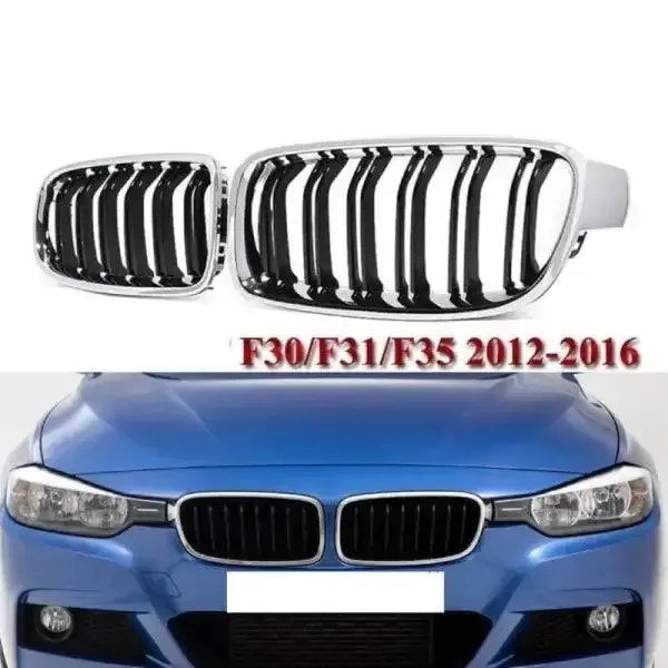 Front Bumper Grill Chrome And Black CC-1546 Compatible With Bmw 3 Series F30 2012-2018