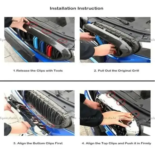 Front Bumper Grill Carbon Fiber Look CC-1528 Compatible With Bmw 1 Series F20 2011-2014
