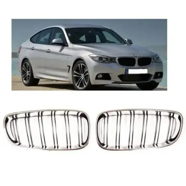 Front Bumper Grill Chrome And Black CC-1550 Compatible With Bmw 3 Series Gt F34 2012-2018