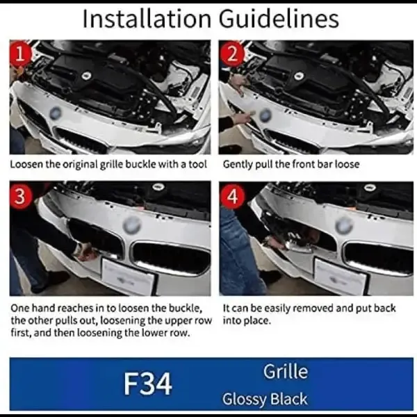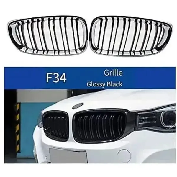 Front Bumper Grill Compatible With Bmw 3 Series Gt F34 2012-2018 Front Bumper Grill Chrome And Black
