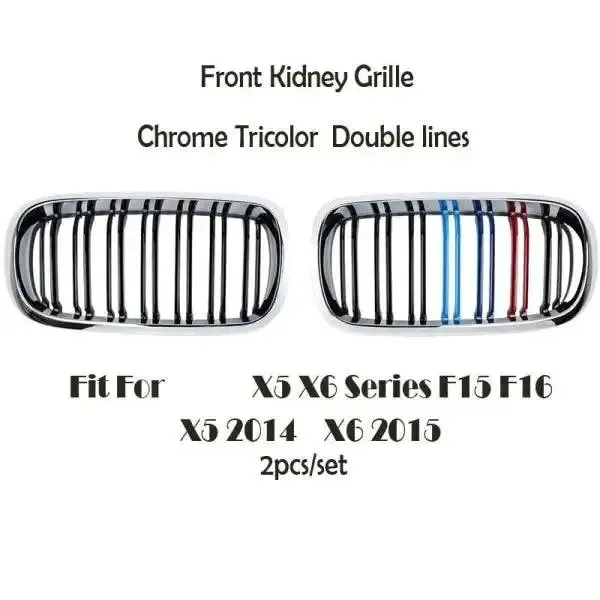 Front Bumper Grill Chrome M-LOOK CC-1623 Compatible With BMW X5 F15 2014-2018 X6 F16 2015-2019