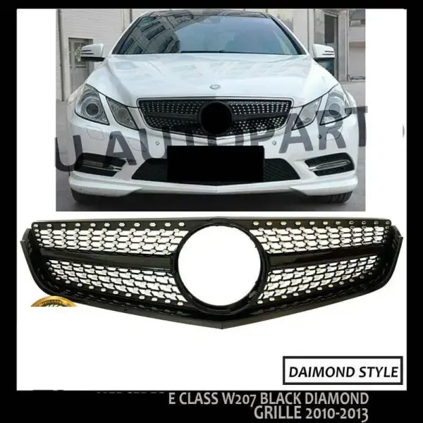 Front Bumper Grill Diamond Black CC-1728 Compatible With Mercedes Benz E Class W207 2009-2013 Coupe Convertible Cabrolette