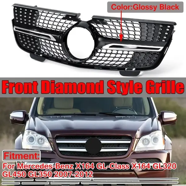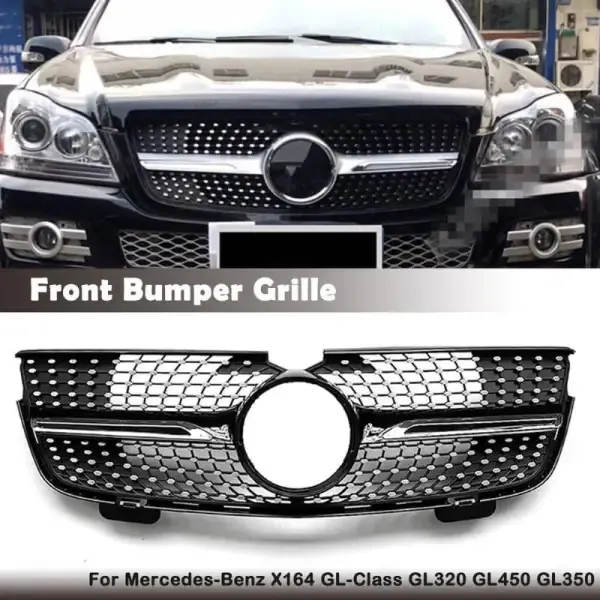 Compatible With Mercedes Gl W164 X164 2008-2012 Front Bumper Grill Diamond BLACK CC-1812