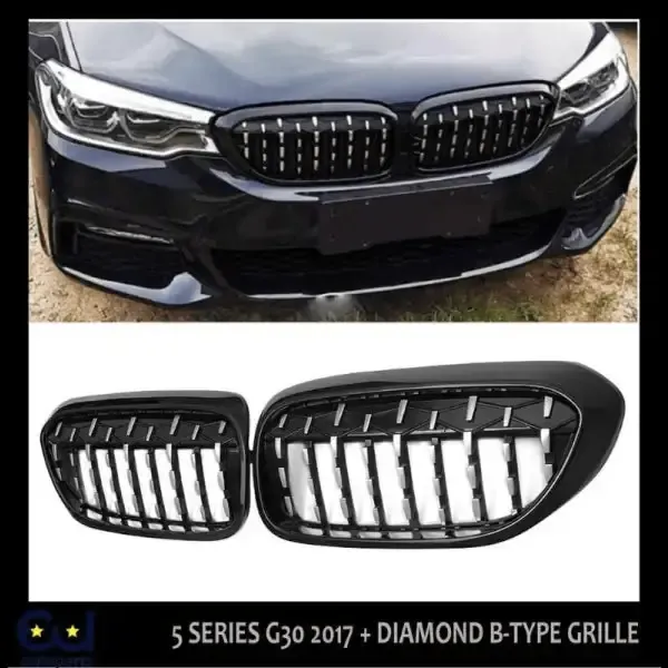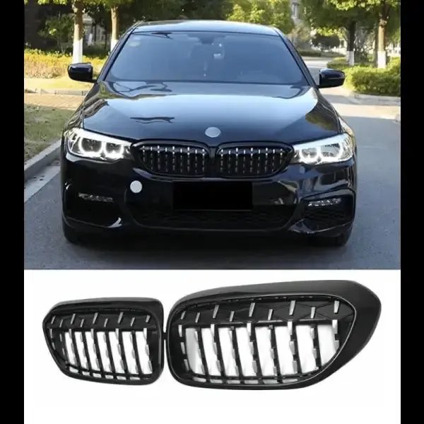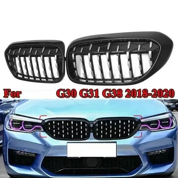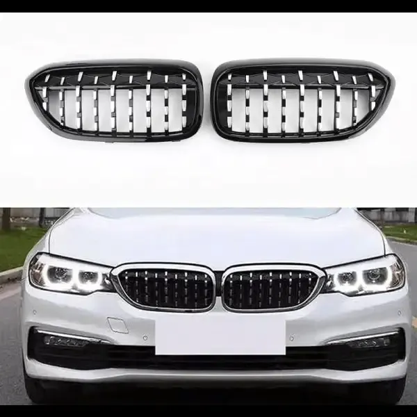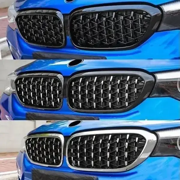 Compatible With Bmw 5 Series G30 2017-2020 Front Bumper Grill Diamond Chrome And Black Single