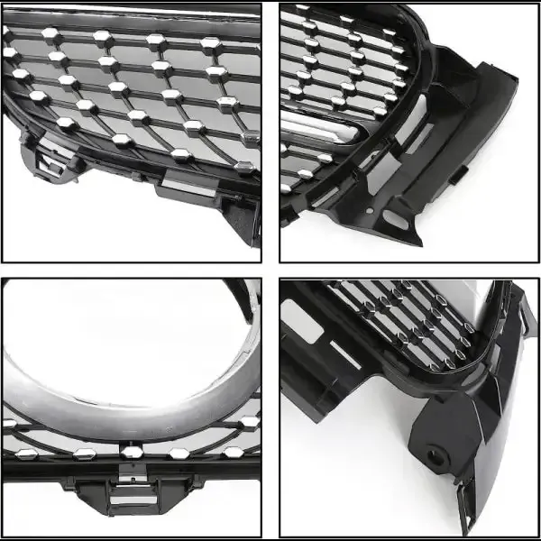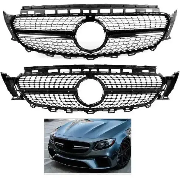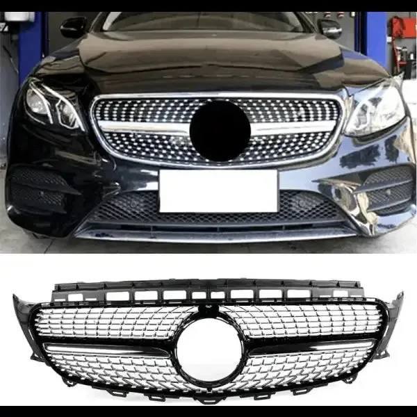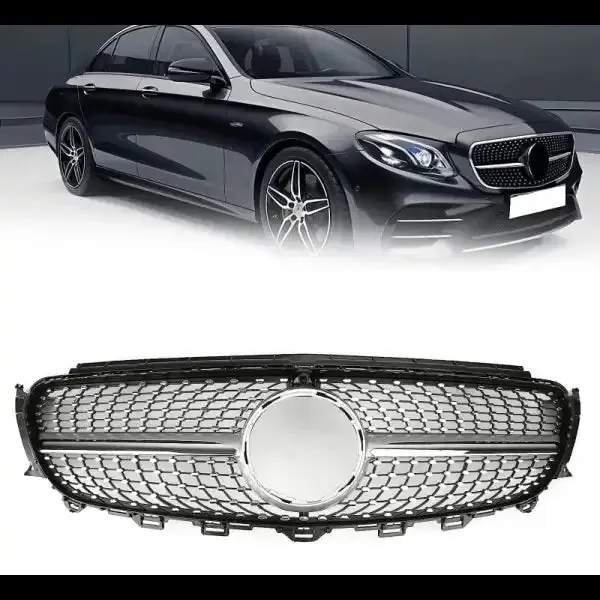 Front Bumper Grill Diamond Silver CC-1737 Compatible With Mercedes Benz E Class W213 2016-2021