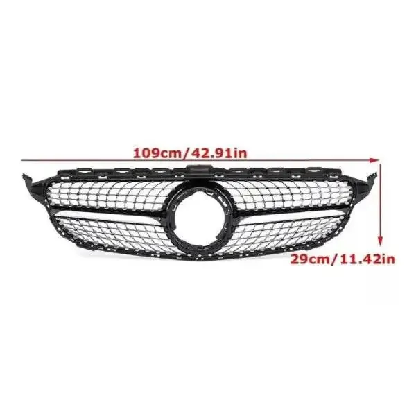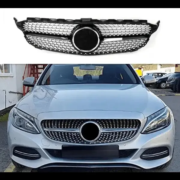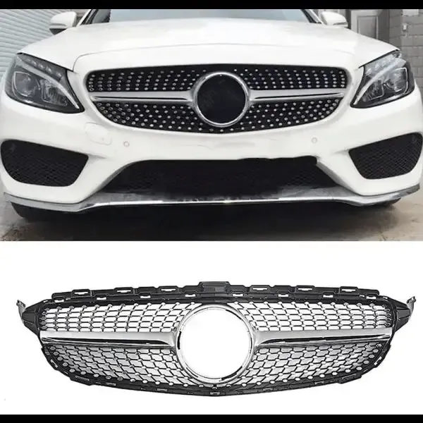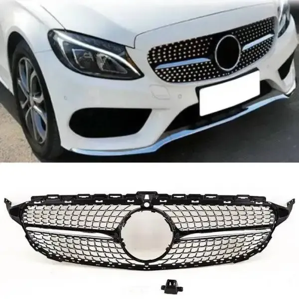 Front Bumper Grill Compatible With Mercedes Benz C Class W205 2014-2019 Front Bumper Grill W205 Grill Diamond Silver