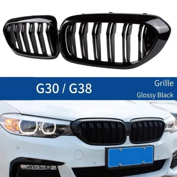 Compatible With Bmw 5 Series G30 2017-2020 Front Bumper Grill Glossy Black